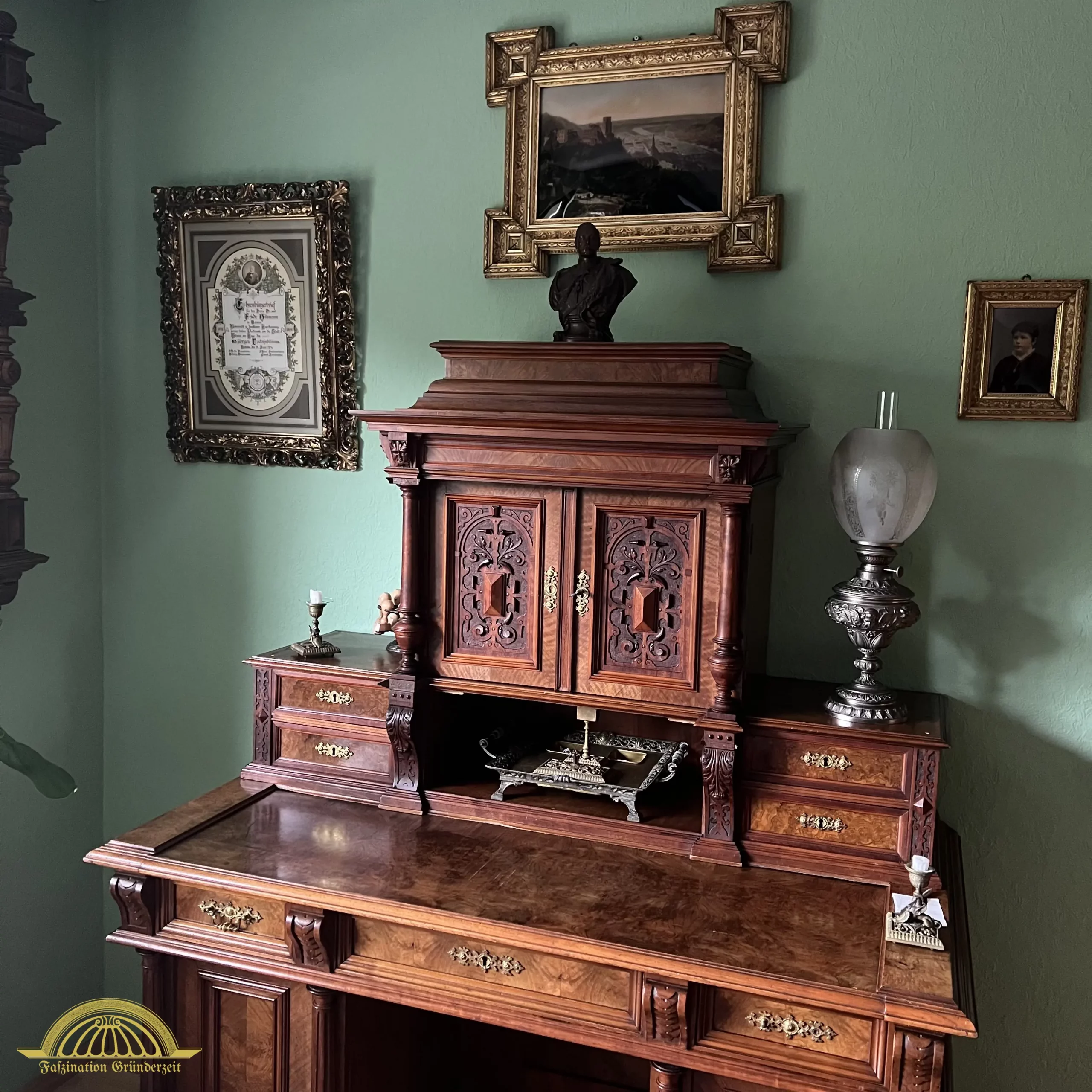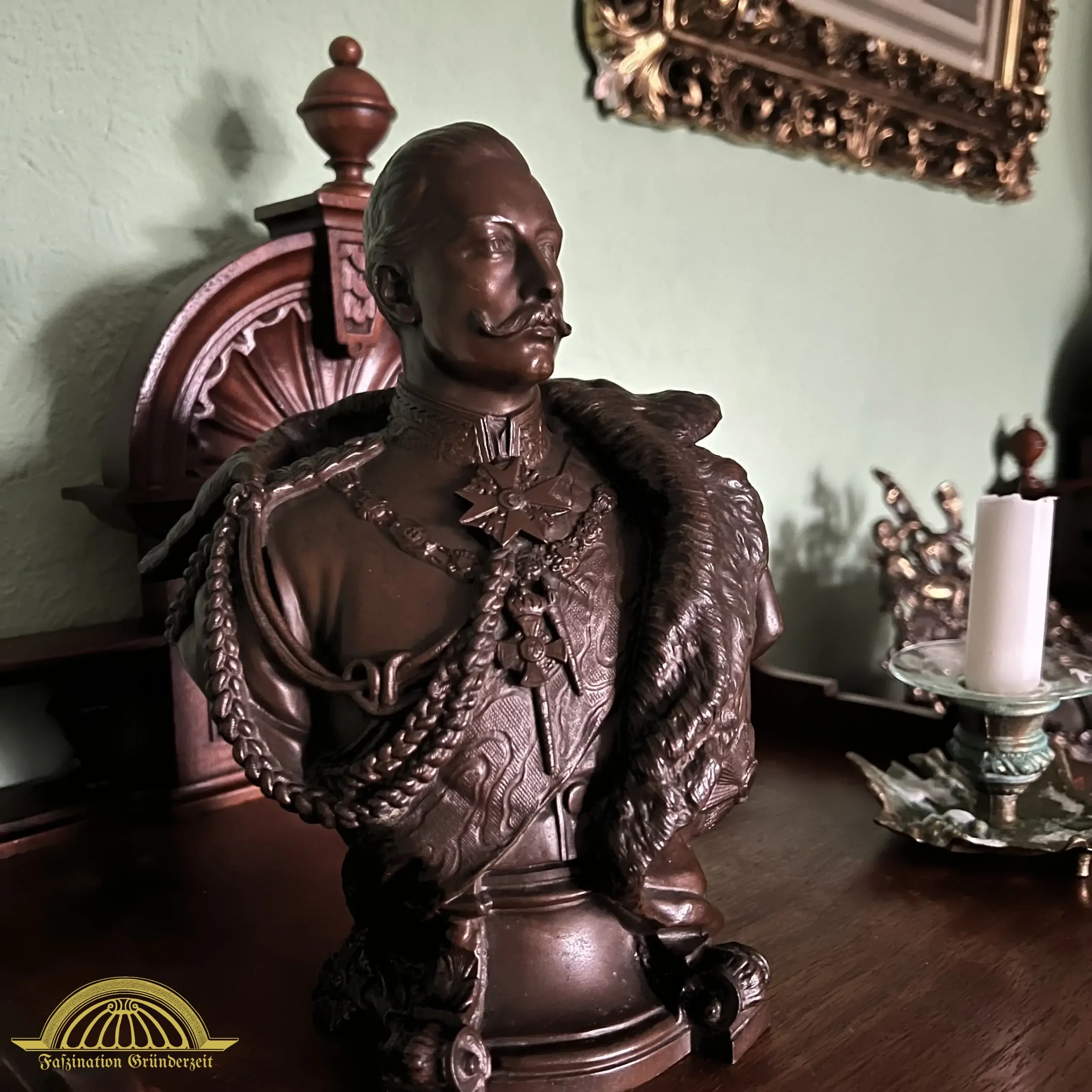 In einem kaisertreuen Haushalt musste natürlich auch Platz für seine Majestät, den Kaiser, sein, der häufig in Form einer Büste, die auf einem Postament platziert wurde, Einzug in die Herrenzimmer hielt.