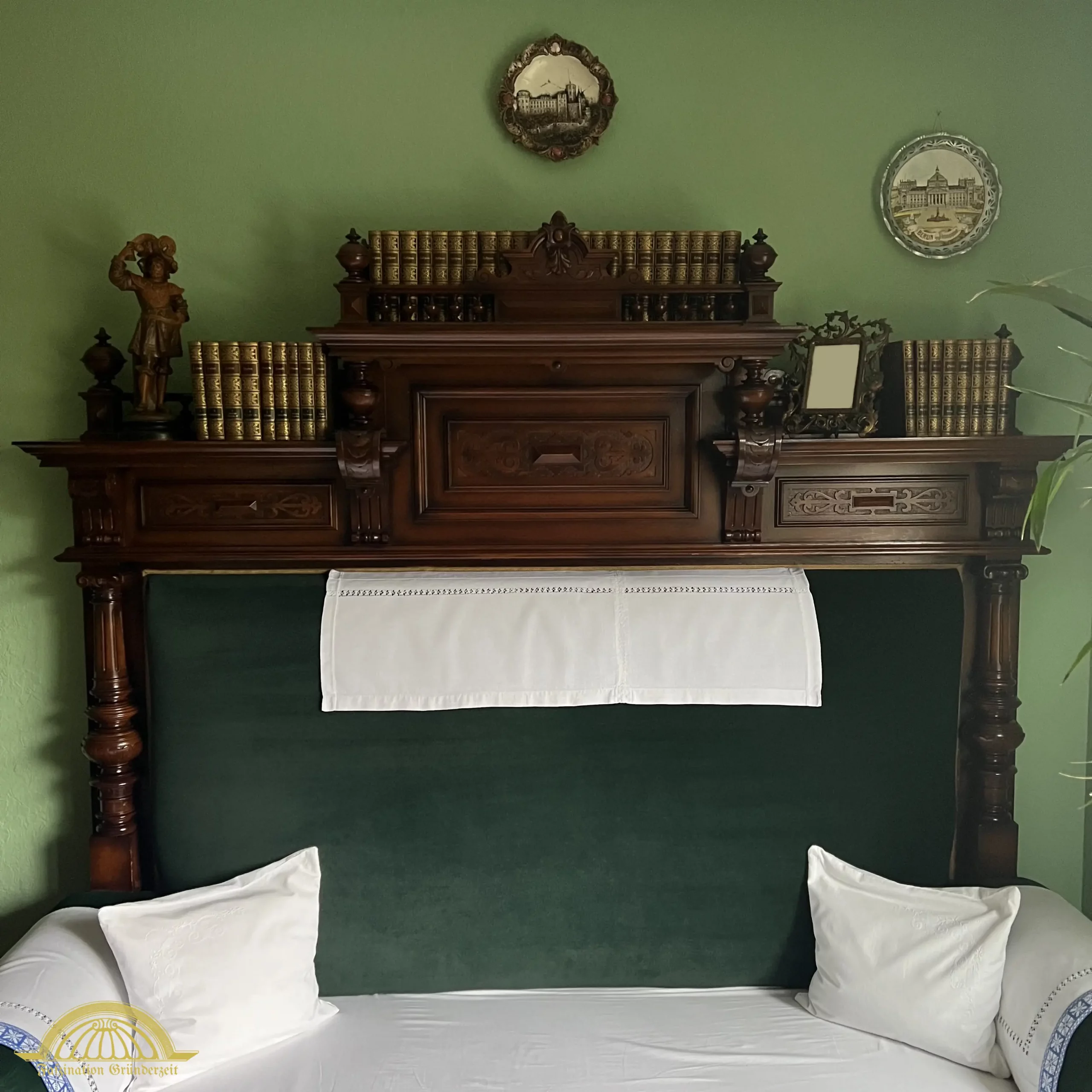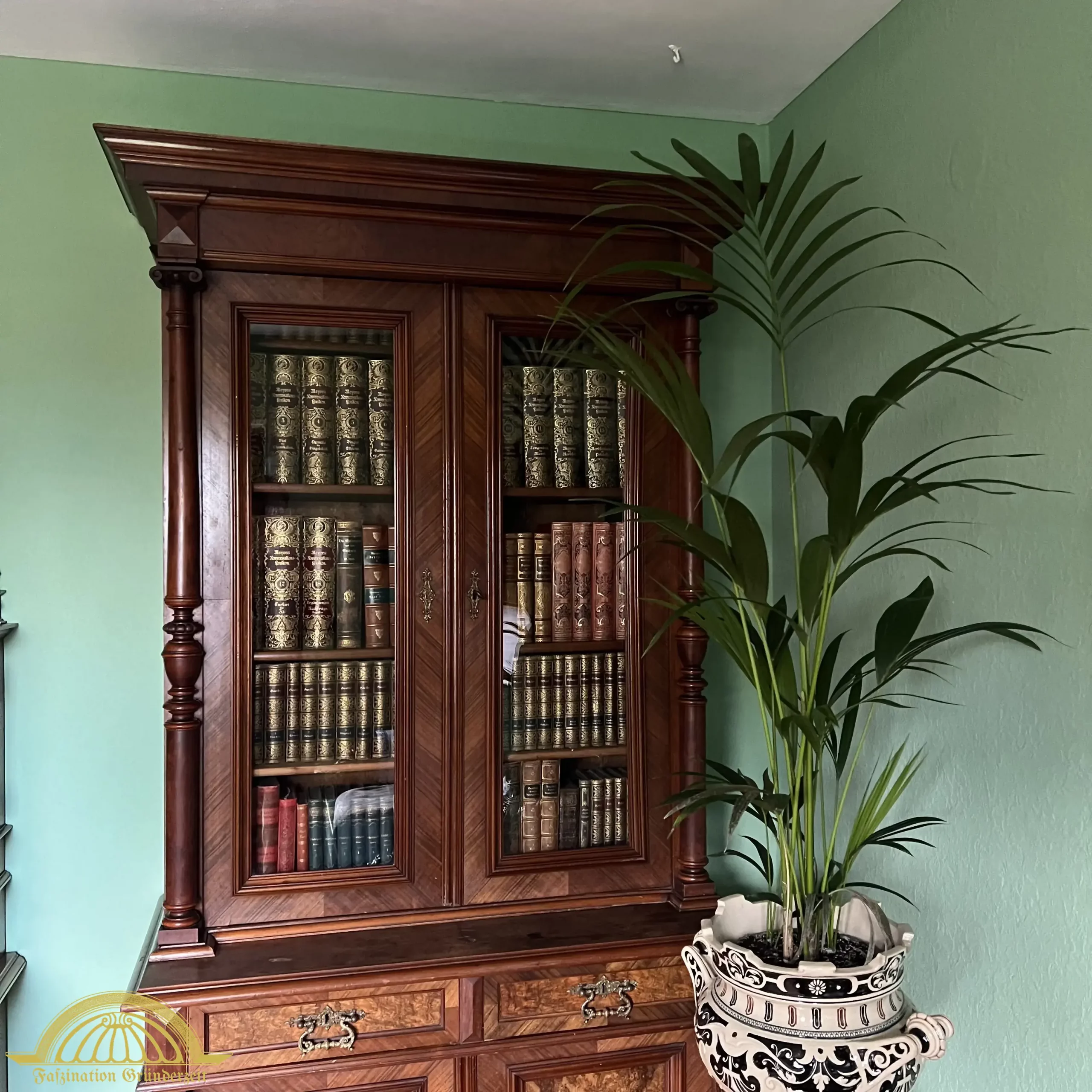 Gerade die Literatur und Nachschlagewerke gehörten unabdingbar in ein Herrenzimmer. In einem schlanken und hohen Bücherschrank wurden viele Bände mit prächtigen goldverzierten Lederrücken gezeigt. Bücher gehörten zweifelsfrei zum Ausdruck des Wohlstandes und des Intellekts.