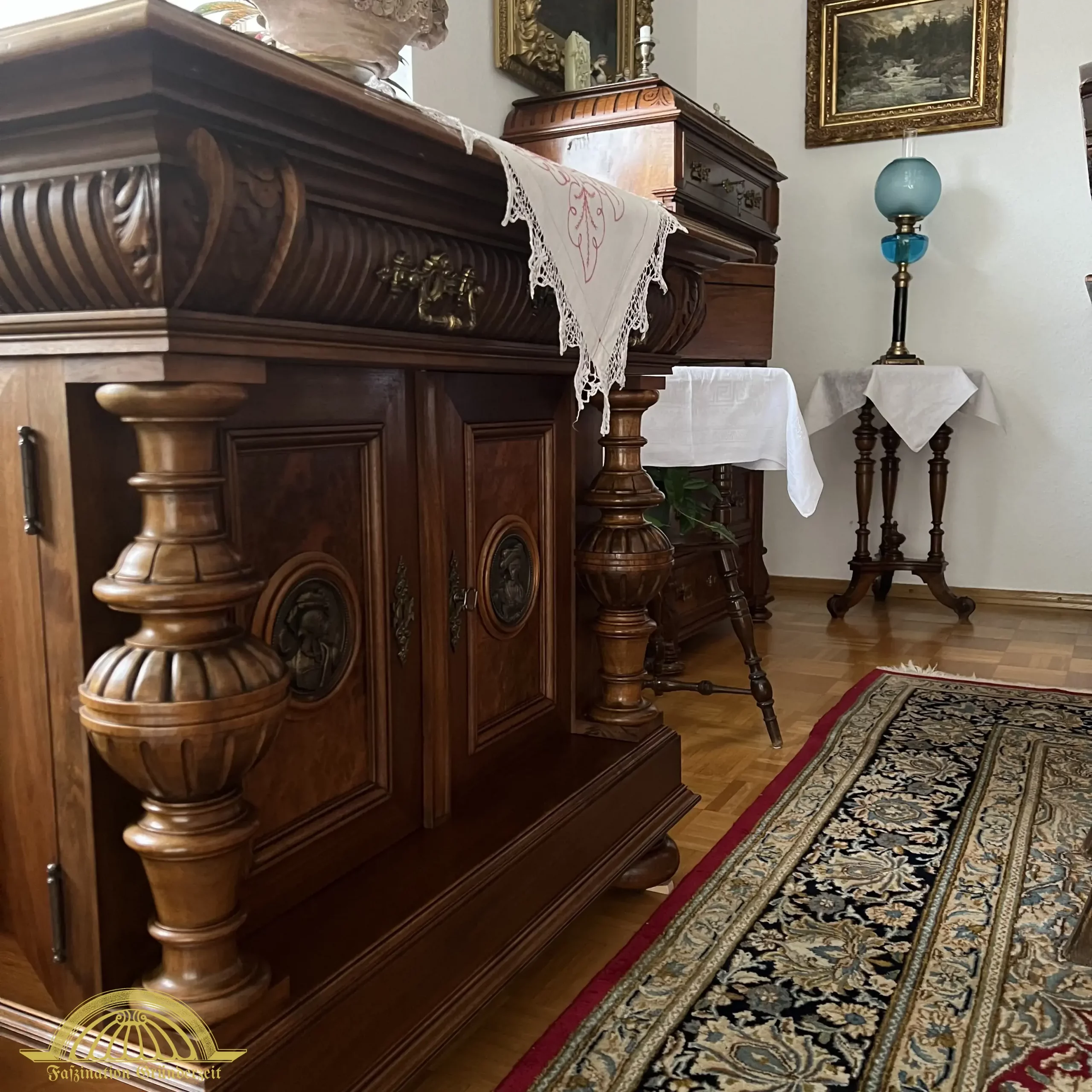 Das Speisezimmer wie auch der Name sagt, der Einnahme der Speisen. Ein zentrales Möbel dieses Raumes musste folglich ein Tisch sein. Die Esstische waren meist sehr tief und konnten weit ausgezogen werden, um große Gesellschaften empfangen zu können (Kulissentisch). Zu dem Tisch gehörten mindestens sechs Stühle, die entweder mit Wienergeflecht, einem Stoffpolster oder Prägeleder bezogen waren. Über dem Tisch prangte immer ein großer Leuchter, der den gesamten Raum beleuchtete. Das wichtigste Möbel und der gesamten Haushaltung war das Buffet. Diese bestachen durch ihre Dimensionen und ihren sehr aufwendigen Aufbau.